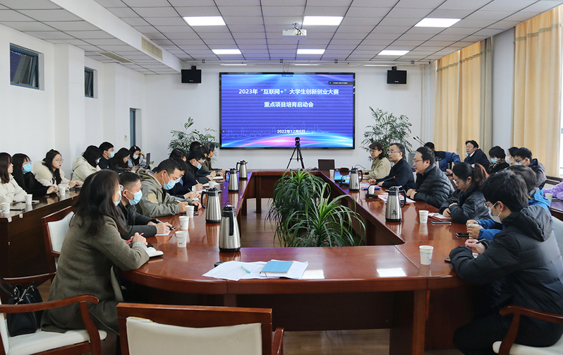 2023年立项的“互联网+”创新创业大赛重点培育项目师生团队、项目所在公司分管领导、校创新创业导师等参加启动会。